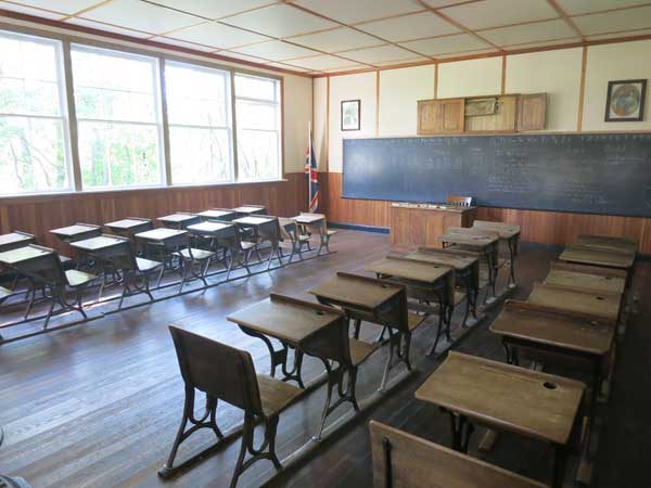The former Barkfield School building, now at the Mennonite Heritage Village Museum (September 2013)