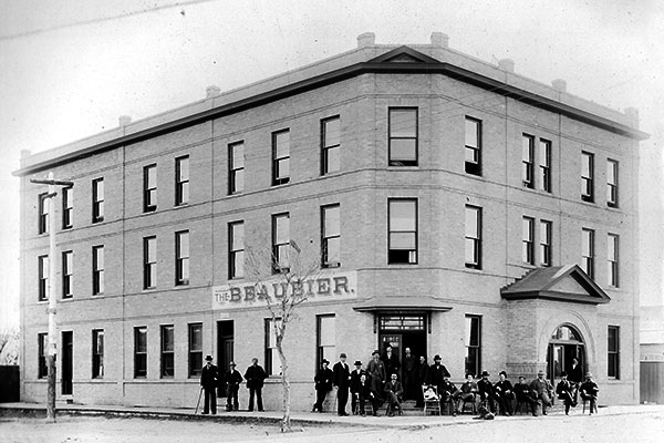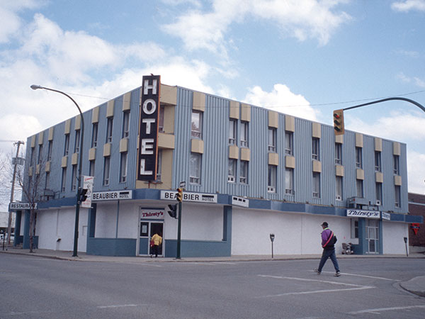 A three-storey brick building at the intersection of Princess Avenue and Eighth Street in Brandon dated from 1893 when it replaced an earlier structure built in 1882 as one of the city’s first boarding houses. Named for its first proprietor Thomas Jefferous Beaubier, the hotel offered 37 rooms for weary travellers. In the early 20th century, it hosted a fine-dining establishment and opened a men-only beer parlour in the 1920s. In 1958, it was renovated with modernized rooms and a new licensed restaurant and beverage room. By the early 2000s, the Beaubier still rented rooms to the city’s less affluent residents but it was most well known (or notorious) for its beverage room, Thirsty’s. The Beaubier closed and was demolished in August 2008.