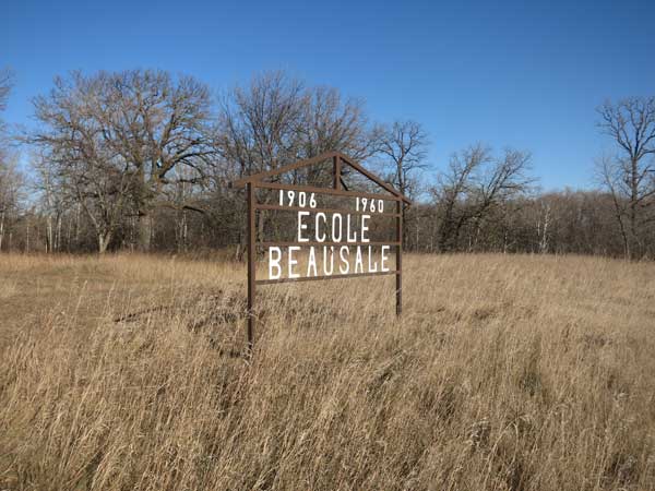 The Beausale School District was established in November 1904 and a one-room schoolhouse operated at SW23-7-8W in what is now the Municipality of Norfolk Treherne. The school closed in 1960 and students went to Notre Dame Consolidated School. The district was dissolved the following year and its area became part of the Mountain School Division. The former school building was moved to SW8-7-7W in the RM of Dufferin where it was used as a private residence. A metal sign at the original site commemorates it.