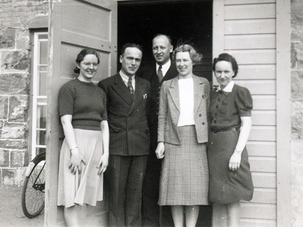 Teaching staff of Belmont School, 1941-1942: (left-right) Miss Jackson, Stanley McGill, Mr. Sadler, ?, Ada ?.