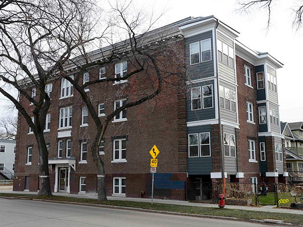 This three-storey brick block on Westminster Avenue in Winnipeg, measuring 40 feet by 78 feet, was designed and was originally planned to be built in 1913. Construction was postponed to 1920 and completed by George Ephraim Baldry. The building contained 11 apartments in its original configuration. It has 12 apartments today.