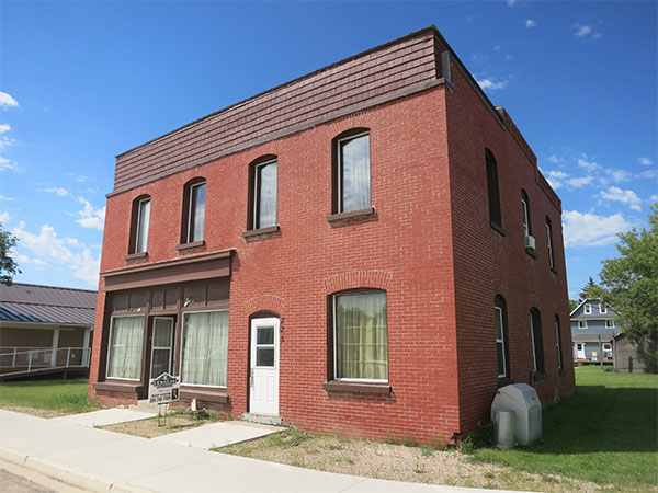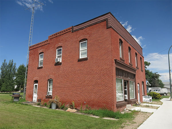 This two-storey building in Reston, in the Rural Municipality of Pipestone, was built in 1906 and faced with brick in 1914. Its original owner was jeweller Edward Hanlon Berry. It had retail space and a private residence on the main floor, with nine bedrooms on the second floor.