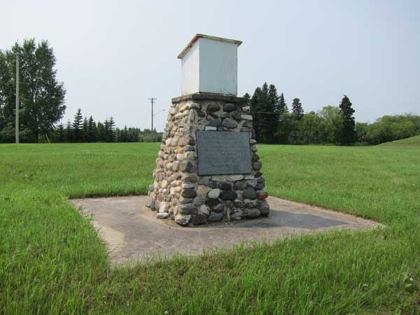 This monument at Bowsman, in the Municipality of Minitonas-Bowsman, marks the site where, on 31 December 1966, outdoor toilets (known colloquially as “biffies”) were burned to commemorate Canadian Confederation in 1967, and the construction of a new sewer service in the community. The monument was unveiled on 1 July 1970 for Manitoba’s centenary.