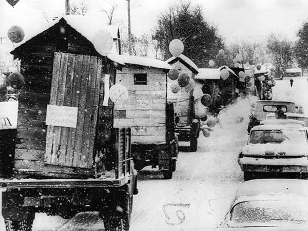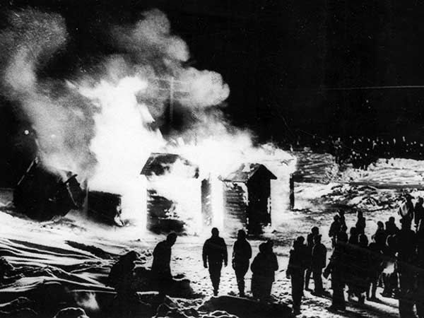 Outhouses are rounded up to be burned at Bowsman (December 1966)