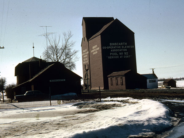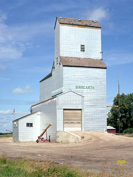 A wooden grain elevator and annex at Binscarth, on the CPR Bredenbury Subdivision in what is now the Municipality of Russell-Binscarth, was built in 1928 and a crib annex was added in 1958. The elevator was renovated in 1971 and more extensively in 1981. It was replaced by a new facility in 1997 and the original elevator and annex were later demolished.