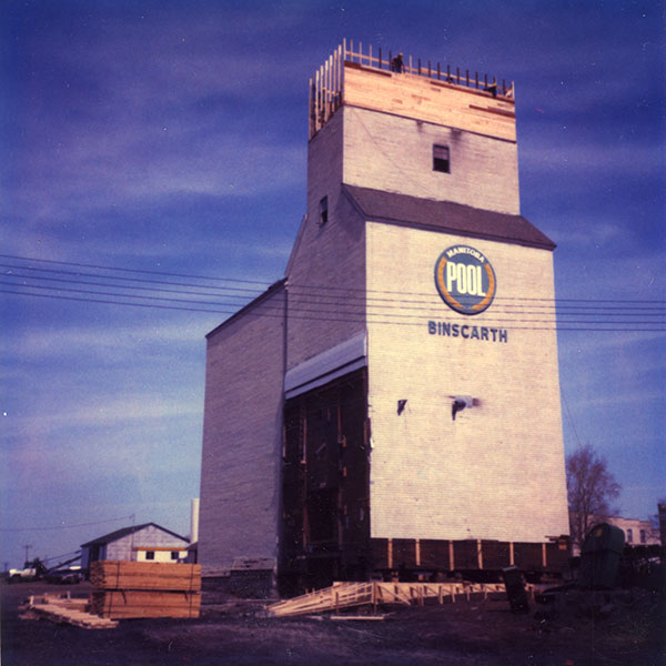 Manitoba Pool grain elevator at Binscarth under renovation (1981)
