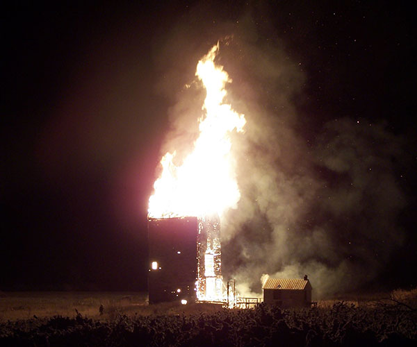 Former Manitoba Pool A grain elevator at Birdtail on fire (October 2008)