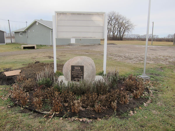 The Birkenhead School District was organized in February 1920, and a school operated in Neuenberg in the Municipality of Stanley, from 1921. A second classroom was added in 1963 but it was closed from 1975 to 1985. After the school closed permanently around 1992, the building remained standing for a time, but is no longer present. It is commemorated at the site by a plaque affixed to a large rock.