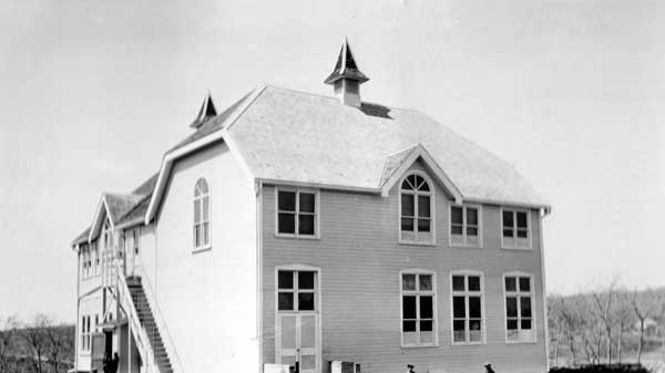 Starting in 1917, high school classes were held in an old Methodist Church until a four-classroom brick school was built in 1928. The Blue School and district school records were destroyed by fire in September 1943. Elementary classes were moved to the Town Hall, Brick High School, and Courtroom until four rooms and an auditorium could be added to the Brick High School in early 1949. Increases in student enrollment caused overcrowding so, in 1956, a four-classroom North School was built. Later consolidated brought the students of the former Burdette School No. 163 (1959), Oxford School No. 257 (1961), Buckleyville School No. 1435 (1964), and Rothesay School No. 350 (1967).
