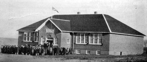 Students beside the newly-constructed “Brick School” of Birtle Consolidated School (circa 1929)