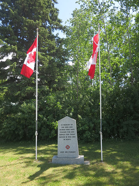 This monument in the Elsie Kacperski Memorial Park in Bissett commemorates local people who served in Armed Forces in war and in peacetime.
