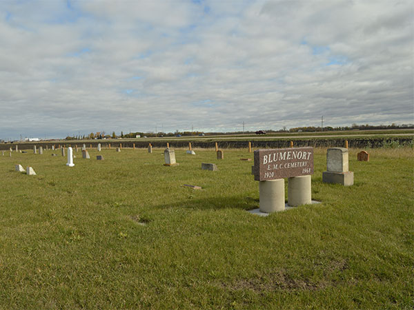 When this cemetery near Blumenort, in the Rural Municipality of Hanover, was first used in 1920, its associated church was named the Kleine Gemeinde. In 1952, the name was changed to Evangelical Mennonite Church and, in 1960, to the Evangelical Mennonite Conference. It is now referred to as the EMC church.