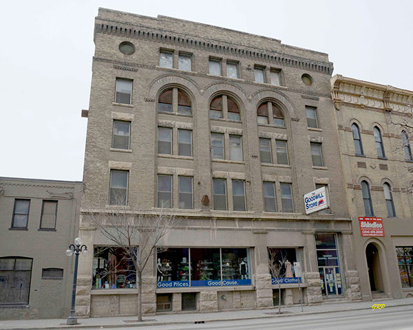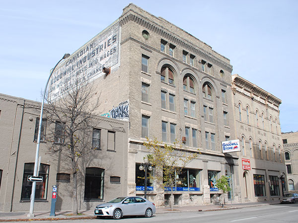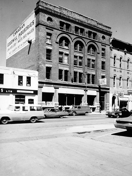This Winnipeg site was acquired by the D. W. Bole Drug Company around February 1902. The property, which measured 66 feet wide and 100 feet deep, was across the street from the company’s existing building next to the Oddfellows Building. Plans for a five-storey, brick and stone warehouse (with basement) were drawn up by local architect J. H. G. Russell, with construction commencing around early April 1903. Work continued through the summer months, delayed in part due to a labour shortages in both men and materiel. Completed around October at a cost of reportedly near $50,000, it featured such modern amenities as electric elevators. The southern-most arch along Princess Street initially featured a driveway into the main floor, though it was later removed. The premises were later occupied by Canadian Goodwill Industries (CGI). Formerly the Welfare Department of Grace United Church, the social service, aid, and employment initiative was re-branded as CGI on 4 April 1931. CGI had previously occupied sites at 311 Notre Dame Avenue, 817 Sherbrook Street, and 88 Arthur Street before relocating here in October 1934.