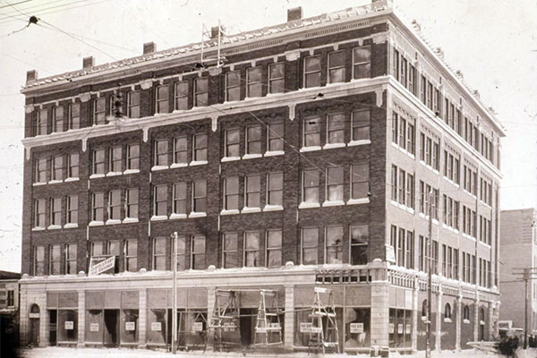 The completed building was originally five storeys with retail and office space on the first three floors and residential apartments on the top two levels. In its early years of operation, Oldfield, Kirby and Gardner handled suite rentals. Until March 1922, its major commercial occupant was the Bon Accord Clothing Company.