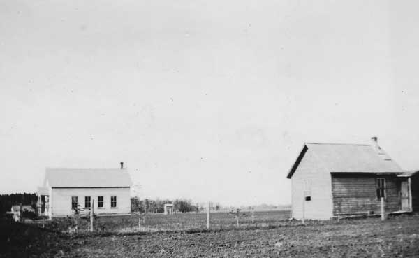 The original Borshaw School building at left with the teacherage at right (no date) by J. S. Peach