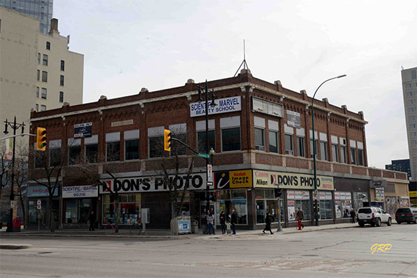 This two-storey brick building on the southeast corner of Portage Avenue at Kennedy Street in Winnipeg was designed by local architect William Fingland and built in 1922 for businessman Hector Halbertram Bradburn. It became a municipally-designated historic site in January 2017.