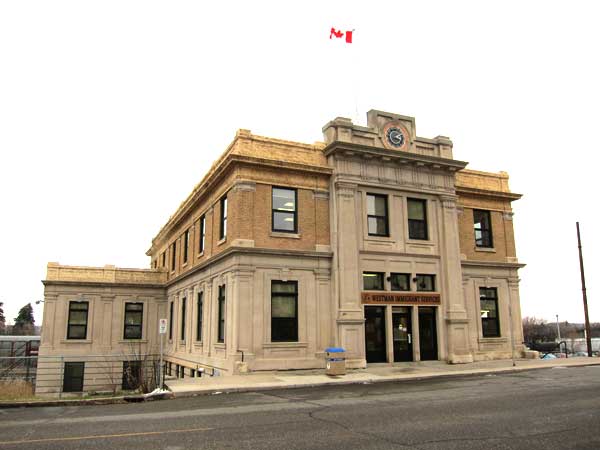 This two-storey brick and stone building on Pacific Avenue in Brandon, measuring 50 feet by 90 feet, with twin one-storey wings on either side measuring 30 feet by 35 feet, was built between mid-1911 and early 1912 by the Brandon Construction Company at a cost of about $60,000 as a new station for the Canadian Pacific Railway. Featuring terrazzo floors and oak paneling inside, the station opened officially on 1 May 1912.