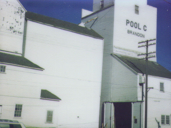 A wooden grain elevator on Pacific Avenue in Brandon was operated by Federal Grain until 1972 when it was sold to Manitoba Pool Elevators. Used until around 1983, the elevator was demolished in 1986.