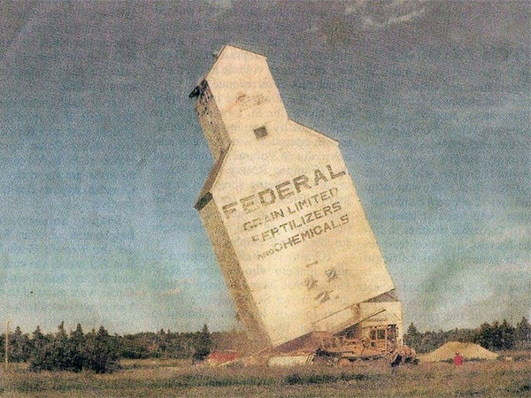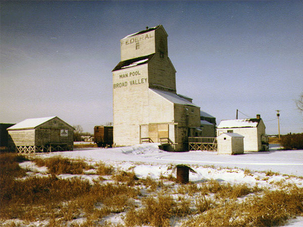 A wooden grain elevator at Broad Valley, on the CNR Inwood Subdivision in the Rural Municipality of Fisher, was built in 1940 by Federal Grain. Sold to Manitoba Pool in 1972, it was closed in 1988 and demolished in 1992.