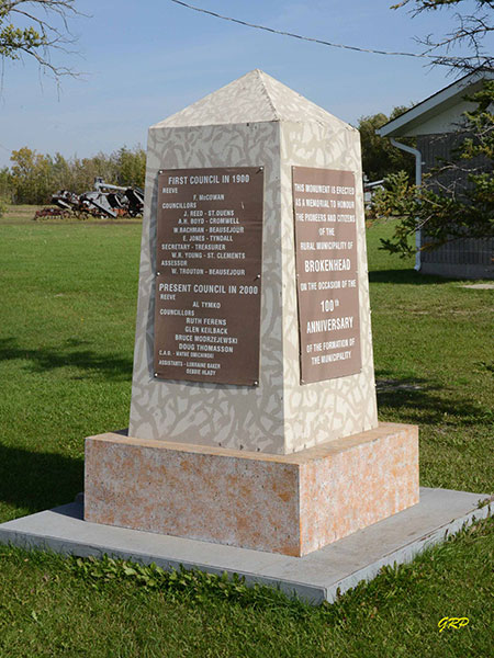 A stone monument on the museum grounds commemorates the 100th anniversary of the Rural Municipality of Brokenhead. It lists the members of the first municipal council. It is also a memorial to the pioneers and citizens of the municipality.