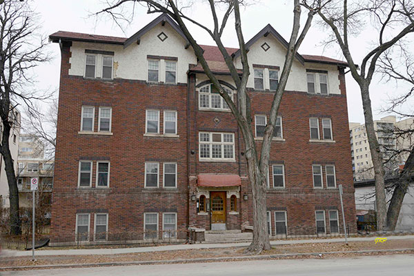 This three-storey brick block on River Avenue in Winnipeg was built in 1928 by the Moxam Construction Company at a cost of about $70,000. The 111 foot by 58 foot building contained 22 apartments in its original configuration, each with three or four rooms.