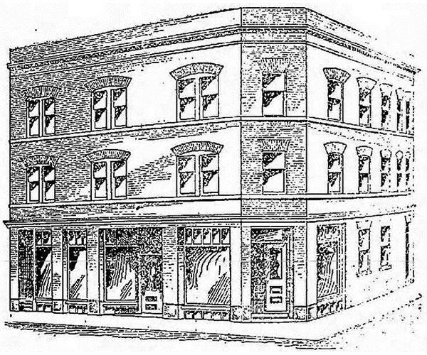 Architectural plans for this building were provided by John Schwab and built by contractor Louis Pachal in 1903. The pentagonal structure measured 19.5 feet parallel to the Argyle Block, 60.5 feet backing onto the Oxford Hotel, and Garry frontage in excess of 44.75 feet. With construction underway, an additional storey was added to the final design, with total construction costs being about $9,000. The ground level contained three commercial suites, including one for Brown's business, and the upper two floors each outfitted as an apartment with five suites per level. Brown opened his new premises in late October 1903.