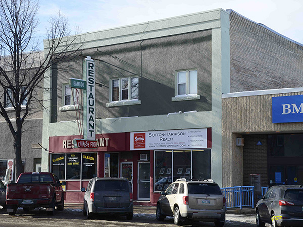 This two-storey building on Mountain Avenue in Neepawa was built around 1897 by John Brown and used as a general store. The south side has housed a restaurant since at least 1944. Various types of businesses have occupied the north side. It is colloquially known as the Bamboo Restaurant Building.