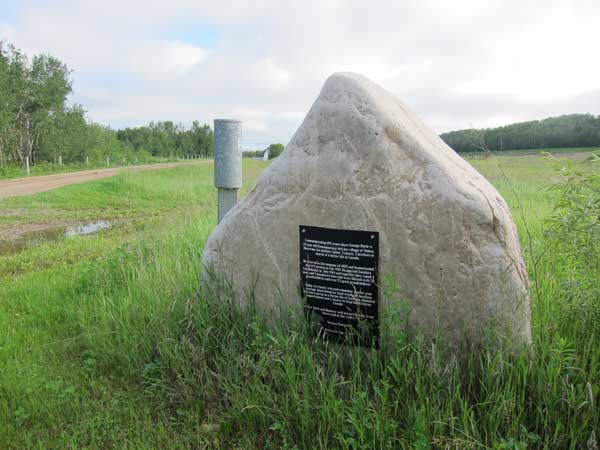 A monument in the Rural Municipality of Riding Mountain West, dedicated on 6 August 2005, commemorates George Burla, who left his home in the village of Voloca, Bucovina in 1905 at the age of 15 years, along with his parents and seven siblings, and emigrated to Canada. Starting in February 1910, he homestead near this site. He married Zanshira Unchulenko in July 1914 and they subsequently had nine children, 35 grandchildren, and over 52 great-grandchildren.