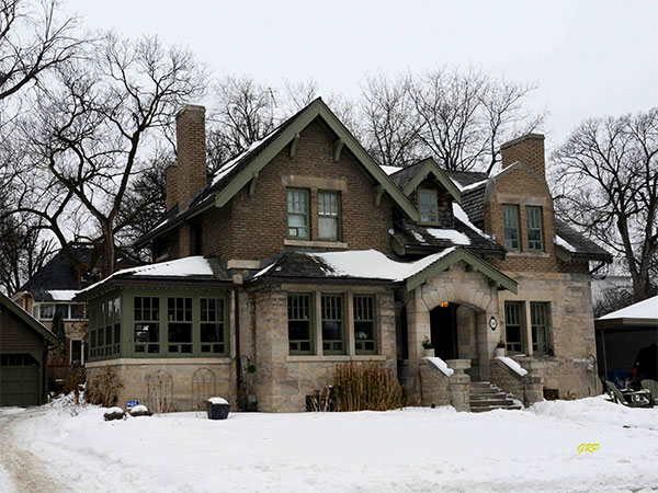 This two-storey house in the Armstrong’s Point area of Winnipeg was designed by local architect John Hamilton Gordon Russell and built in 1911 for grocer William James Campbell.