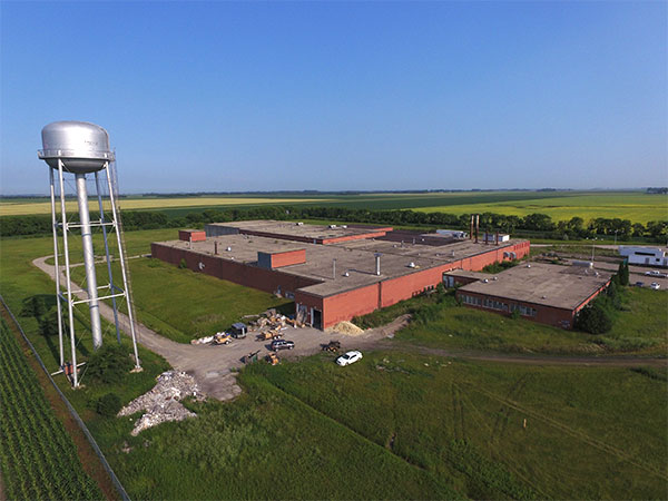 Aerial view of the former Campbell Soup plant at Portage la Prairie (July 2017)