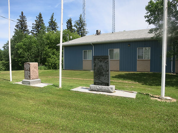 Monuments at Camperville, erected in 1977 by the Camperville Ladies Church Auxiliary, list members of the community who served in the military during the First World War and Second World War, some of whom were killed.