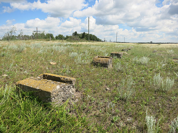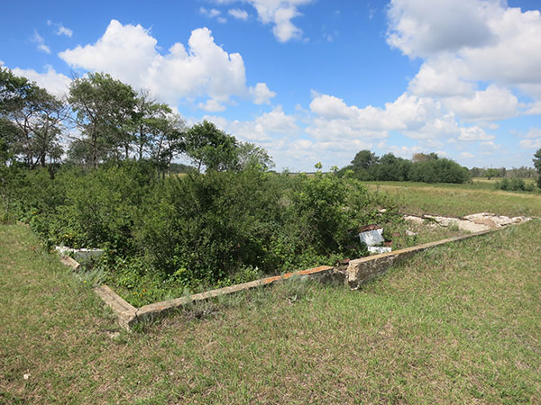 Remains of the concrete foundation for one of the buildings at Camp Hughes (July 2016)