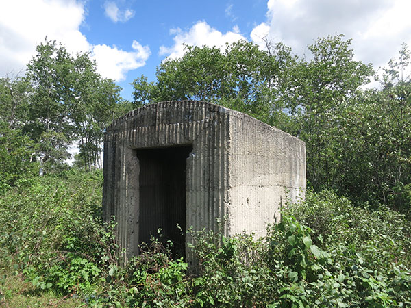 Training at Camp Hughes was suspended in 1917. After the First World War ended, the camp was used for summer training of militia. Between 1933 and 1936, the moveable parts were moved to the newly-established Camp Shilo to the south, and the rest was dismantled as part of an unemployment relief project. Remains of the training trenches remain visible in places – said to the best-preserved First World War trenches in North America – along with the concrete foundations of several buildings, concrete motor mounts for the theatre projectors, the swimming pool (used informally as a garbage dump), and a small concrete structure of unknown purpose. Archeological excavations have been undertaken by the Military History Society of Manitoba, Manitoba Historic Resources Branch, and faculty and students from Brandon University.