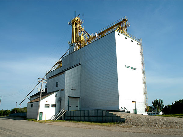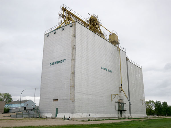 In 1981, Manitoba Pool Elevators built a 60,000-bushel crib annex on the west side of its 54-year-old elevator at Cartwright, on the CPR Napinka Subdivision in what is now the Municipality of Cartwright-Roblin. Then, between October 1986 and December 1987, it constructed a 145,000-bushel composite-style (elevator and annex in a single crib) structure on the west side of the earlier annex and demolished the old elevator on the east end. The facility was opened officially on 13 April 1988. Closed by Agricore in July 2001 and put up for sale, the elevator was purchased by the Willow Creek Hutterite Colony which also rents out storage space to other farmers. The adjacent railway line was abandoned in May 2008.
