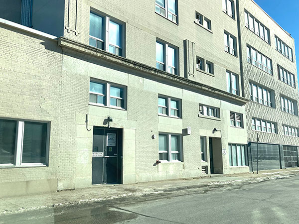 Original Leonard and McLaughlin Garage and Auto Sales Building facade along Young Street (February 2024)