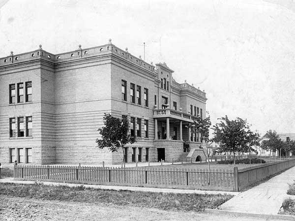 Established in 1906 and known as Weston School, classes were initially held in the Bates block around the 1500 block of Elgin Avenue. There were several smaller education facilities in the neighbourhood, including property leased from J. Berryhill, the Calvin Presbyterian Church on Elgin Avenue, Lock Apartments on Logan Avenue at Lock Street, and a house on Ross Avenue.
