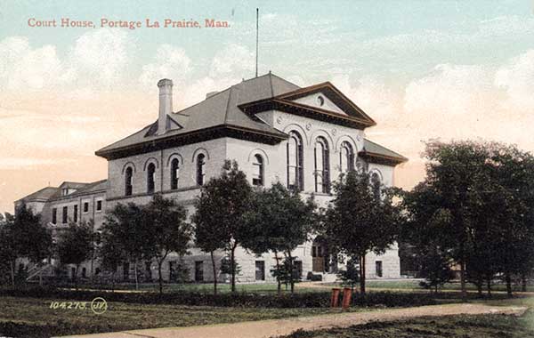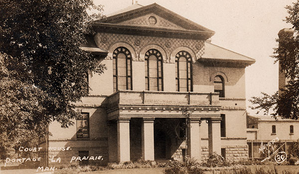 Around 1891, a gaol building for the Central Judicial District was constructed at Portage la Prairie on a design by Winnipeg architect Charles H. Wheeler. Three years later, a two-storey brick structure designed by George Creeford Browne was constructed to provide more prison cells and rooms for the County Court, Surrogate Court, and Queen’s Bench Court, and the Sheriff’s office.