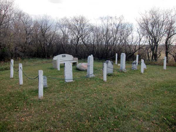 This small cemetery atop a small hill along highway 21 in the Municipality of Grassland was also the site of a Society of Friends (Quaker) Meeting House. Built in 1899, services were held in it until 1949 when it was moved to the village of Dand where it became Dand United Church. A commemorative monument was erected at the site in 1967.