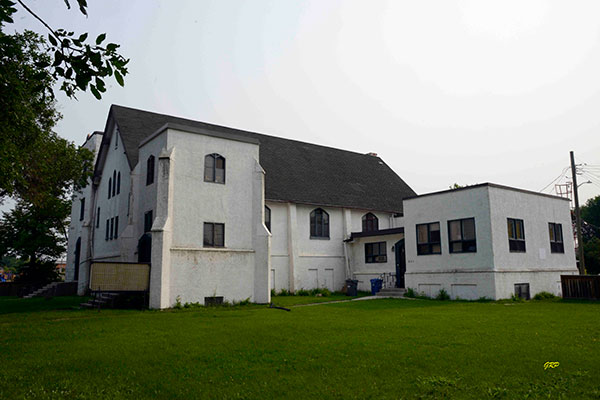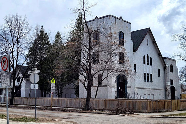 This one-storey frame and stucco building at the southeast corner of Spruce Street and Barrett Avenue in Winnipeg, measuring 40 feet by 78 feet, was designed by local architect Edgar Prain. It was constructed in 1928 by the firm of Langford and Birch, at a cost of about $30,000. The building opened officially on 30 September 1928 as Chalmers United Church with room for 400 congregants.