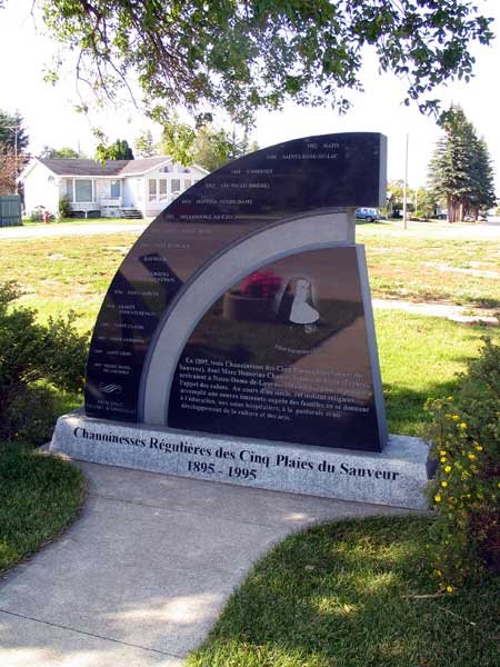 In 1895, the Chanoinesses des Cinq Plaies (called the Sisters of the Saviour), under Mother Honorine Chanut, came from Lyon (France) to Notre Dame de Lourdes in response to a call from Francophone settlers in the area. Over the next century, this eminent religious order contributed to local education, hospital care, religious instruction, and development of culture and arts.