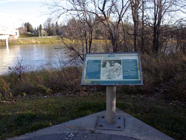 “Assiniboine River as a Road” plaque at N49.87208, W97.26425 (2010)