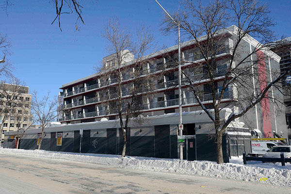 This five-storey hotel at the southeast corner of the intersection between York Avenue and Hargrave Street in Winnipeg was designed by the architectural firm of Waisman Ross and Associates and built between 1959 and 1960 by A. Akman and Son.