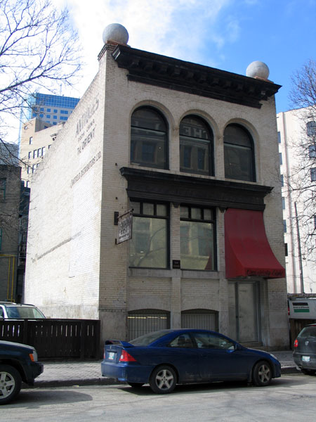 This two-storey brick building, designed by Winnipeg architect J. H. G. Russell, was built in 1904 by Davidson Brothers for the printing firm of Franklin Press. The company went out of business in 1926 and a wholesale tobaccoist took over the building. During the 1940s and 1950s, it was occupied by a office supply company. After 1967, it was home of Chatfield Distributors, a manufacturers’ agent and importing firm. The building is a municipally-designated historic site.