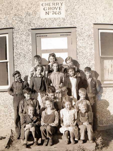 Cherry Grove School District was formally established in May 1893 with classes initially held in the log cabin of John McAuley Sr. The next year, a new wood frame building was erected on the northeast quarter of 4-15-29 west of the Principal Meridian in the Rural Municipality of Archie. In 1940 it was moved to SE33-14-29W then moved again, to this location (SE29-14-29W) in 1908. At some point, that frame school was replaced by another one. It closed and the district was dissolved in July 1954, the remaining students joining Rutherglen Consolidated School in McAuley. A cairn, unveiled in 1983, occupies the former site of the school.