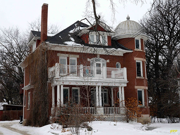 This two-storey house in the Armstrong’s Point area of Winnipeg was designed by architect David Wynyard Bellhouse and built in 1909 by contractor William Wardell Cross for Horace Chevrier.