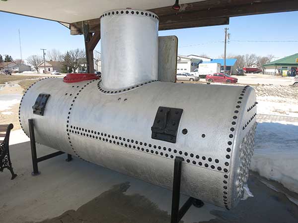 The monument consists of a model and an iron boiler from the steamboat Cheyenne that operated on the Red River during the 1870s and 1880s. As the boat was sinking on 2 June 1885, the boiler was thrown overboard. In 1981, it was found during construction of a flood dike around the community and was recovered from the river. It was restored by the Trojan Board Limited under Robert Newman (President) and Vaughan Lawson Baird (Vice-President).