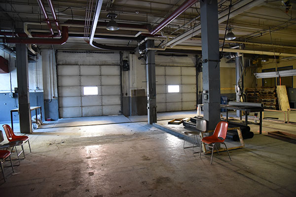 Former appliance showroom converted to vehicle maintenance garage (December 2023)