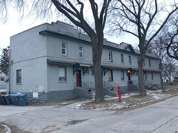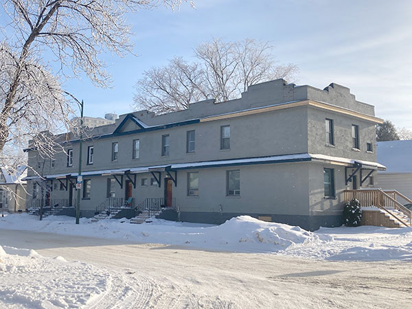 A two-storey, five-unit brick terrace building at the southeast corner of Arnold Avenue and Nassau Street South in Winnipeg, measuring 24 feet by 110 feet, was built in 1914 by its owner, local contractor Reubin Cohen, at a cost of about $12,000.