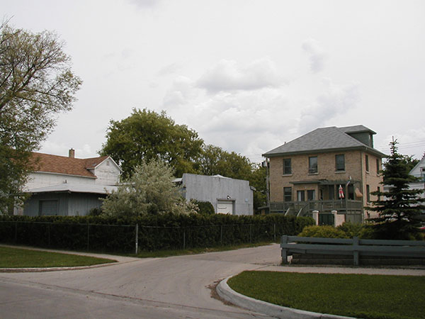 Machine shop and garage of the former Constant macaroni factory at left and Constant family home at right (June 2002)