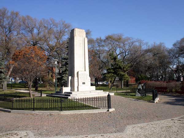 A monument adjacent to the cenotaph was erected by the Norwood-St. Boniface Legion Branch No. 43. A small parcel of land in the park’s northeast corner was re-allocated by the Parks Board for the construction of public library.